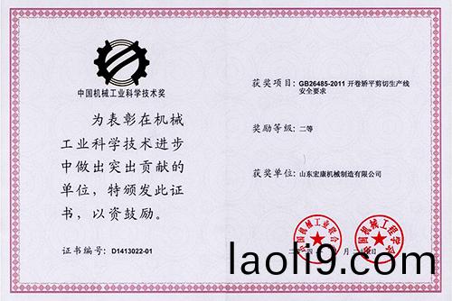 機(ji)械工(gong)業科學(xue)技(ji)術(shu)獎(jiang)