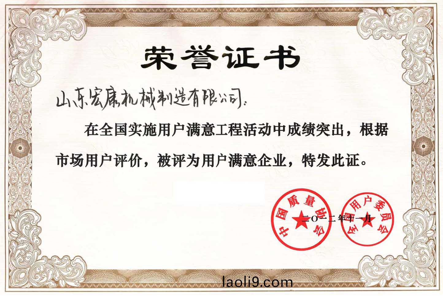 中(zhong)國(guo)質量(liang)協(xie)會(hui)榮(rong)譽(yu)證書