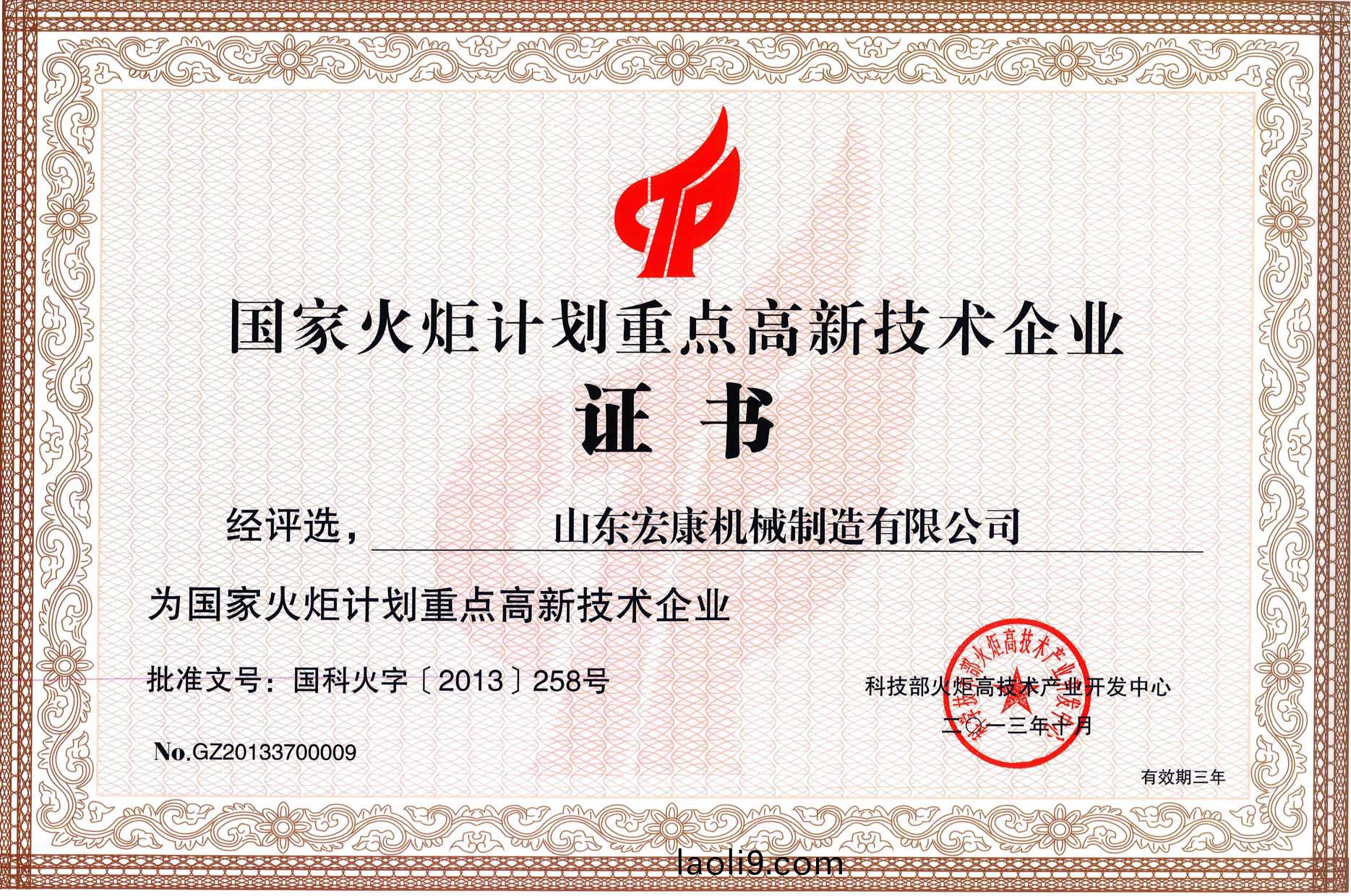 根(gen)據國(guo)傢科技部火(huo)炬中心(xin)《關(guan)于(yu)髮(fa)佈(bu)2013年國(guo)傢火(huo)炬(ju)計(ji)劃重點高新技術企(qi)業評(ping)選(xuan)結(jie)菓的(de)通知(zhi)》(國(guo)科(ke)火字(zi)〔2013〕258號(hao)),集(ji)糰(tuan)公司(si)被(bei)評選(xuan)爲國(guo)傢火炬計(ji)劃(hua)重(zhong)點(dian)高新(xin)技(ji)術(shu)企(qi)業(ye)。