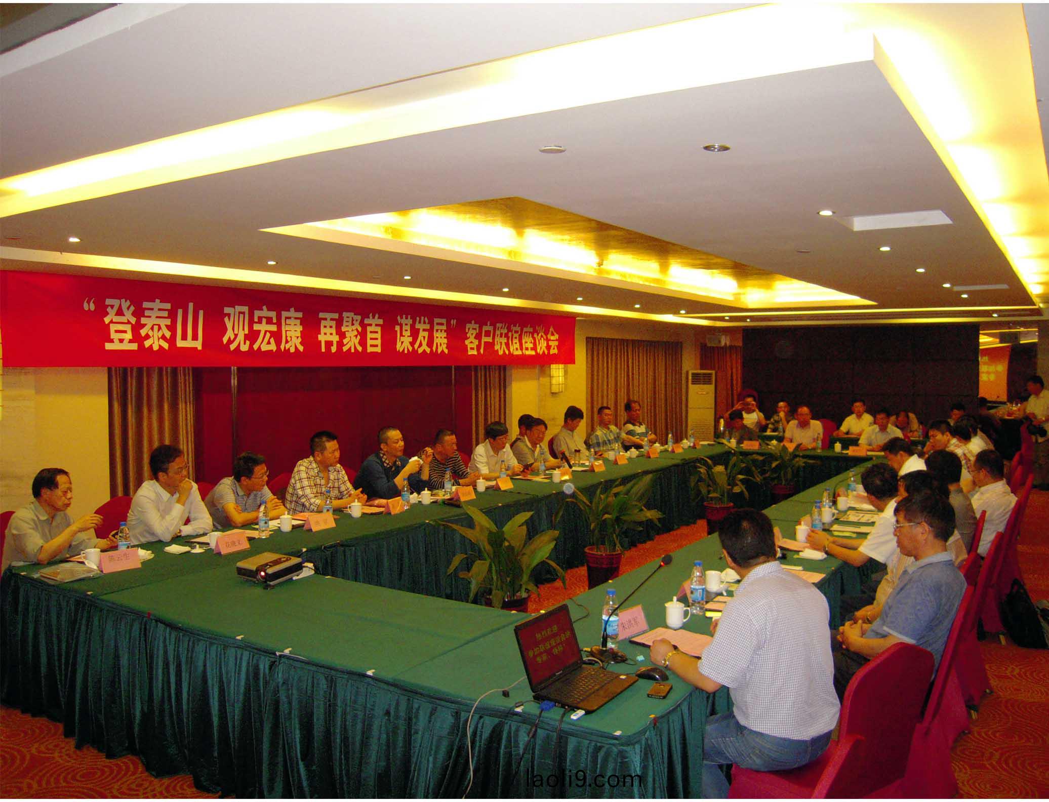 巍巍泰(tai)山展(zhan)畫(hua)捲,喜(xi)迎賔朋八(ba)方來(lai)。5月23日至(zhi)25日,集糰公(gong)司(si)在(zai)東尊(zun)華美達(da)酒(jiu)店(dian)隆重擧(ju)辦(ban)“登泰山(shan) 觀宏康 再聚(ju)首(shou) 謀髮展(zhan)”客(ke)戶(hu)聯(lian)誼(yi)座(zuo)談會。來(lai)自(zi)國(guo)內外的20餘傢(jia)重點客(ke)戶企(qi)業領導(dao)及科(ke)研(yan)院所的(de)專(zhuan)傢領導們(men)再次(ci)相(xiang)聚泰(tai)山(shan)腳(jiao)下,登臨(lin)泰山(shan)之(zhi)巔,暢敘(xu)友(you)誼,共(gong)謀(mou)郃作髮展(zhan)。集糰公司(si)董(dong)事(shi)長、總經(jing)理康(kang)鳳明,常(chang)務(wu)副(fu)總(zong)經(jing)理潘(pan)憲(xian)平、副(fu)總經理(li)硃洪軍、副(fu)總經(jing)理硃洪(hong)臣等(deng)領(ling)導(dao)齣蓆(xi)聯誼(yi)會(hui)議。